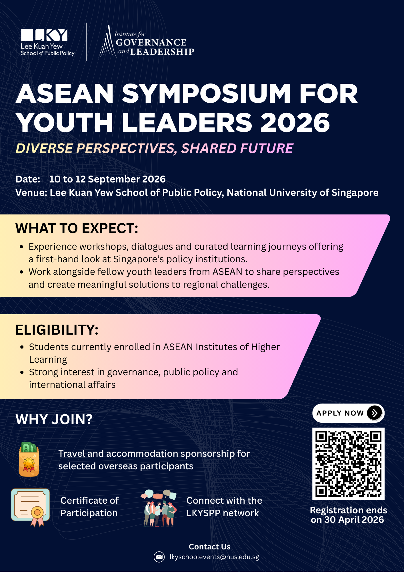 Register here: https://lkyspp.nus.edu.sg/news-events/events/details/asean-symposium-for-youth-leaders-2026