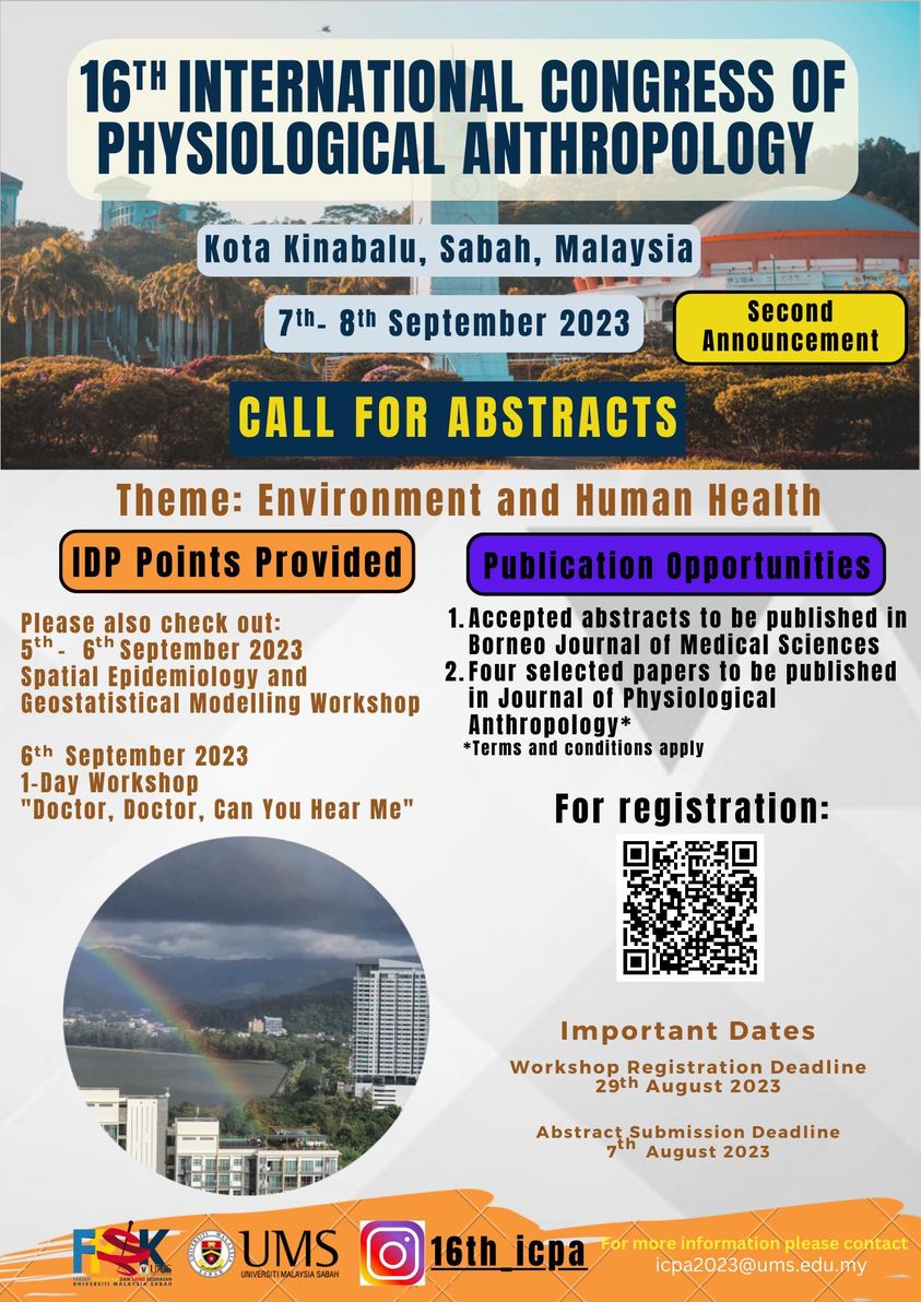 For additional information, please refer to the attached announcement poster and visit their website at https://www.16thicpa.com/. If you have any questions or need assistance, feel free to reach out to them at icpa2023@ums.edu.my.