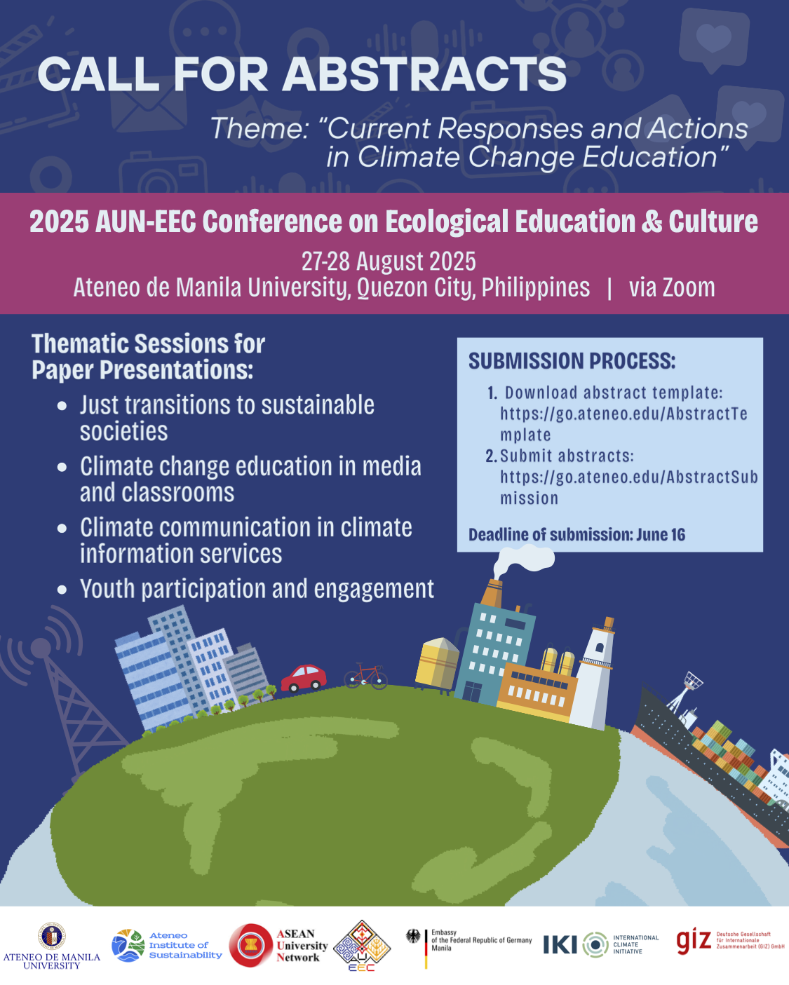 This conference is organized by AUN-EEC, housed at the Ateneo Institute of Sustainability, in partnership with the Deutsche Gesellschaft für Internationale Zusammenarbeit (GIZ).