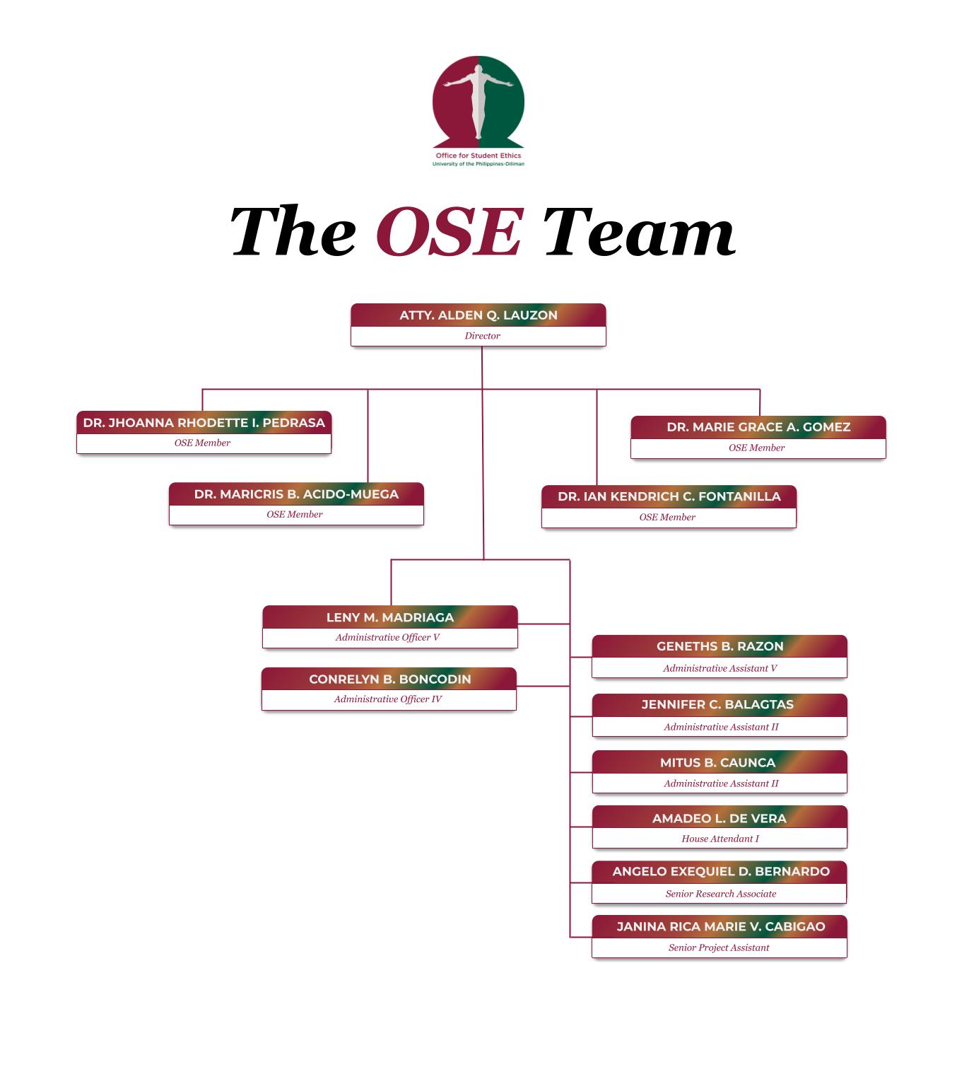 Formerly the Student Disciplinary Council (SDC) formed by the Chancellor under the administrative supervision of the Vice Chancellor for Student Affairs, the OSE is the disciplinary arm of the University, as per the 2012 UP Diliman Code of Student Conduct.